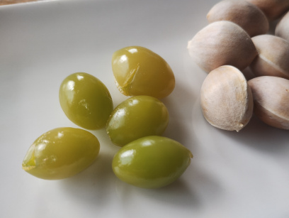 殻を剥くと、思わず「わあ!」と声が出るほど、緑色につやつやと輝く、とても綺麗な実が現れました。